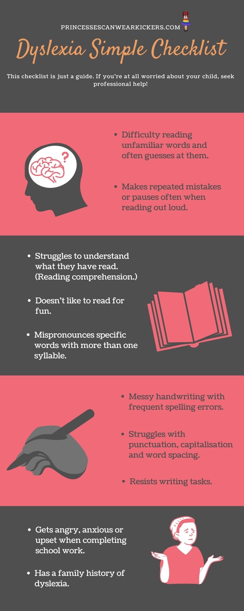 As I said at the start of this article, these are all just indicators. However, if you have checked more than 10 of these points, there is a stronger chance that your child has dyslexia and you should contact a professional for another more substantial dyslexia test.